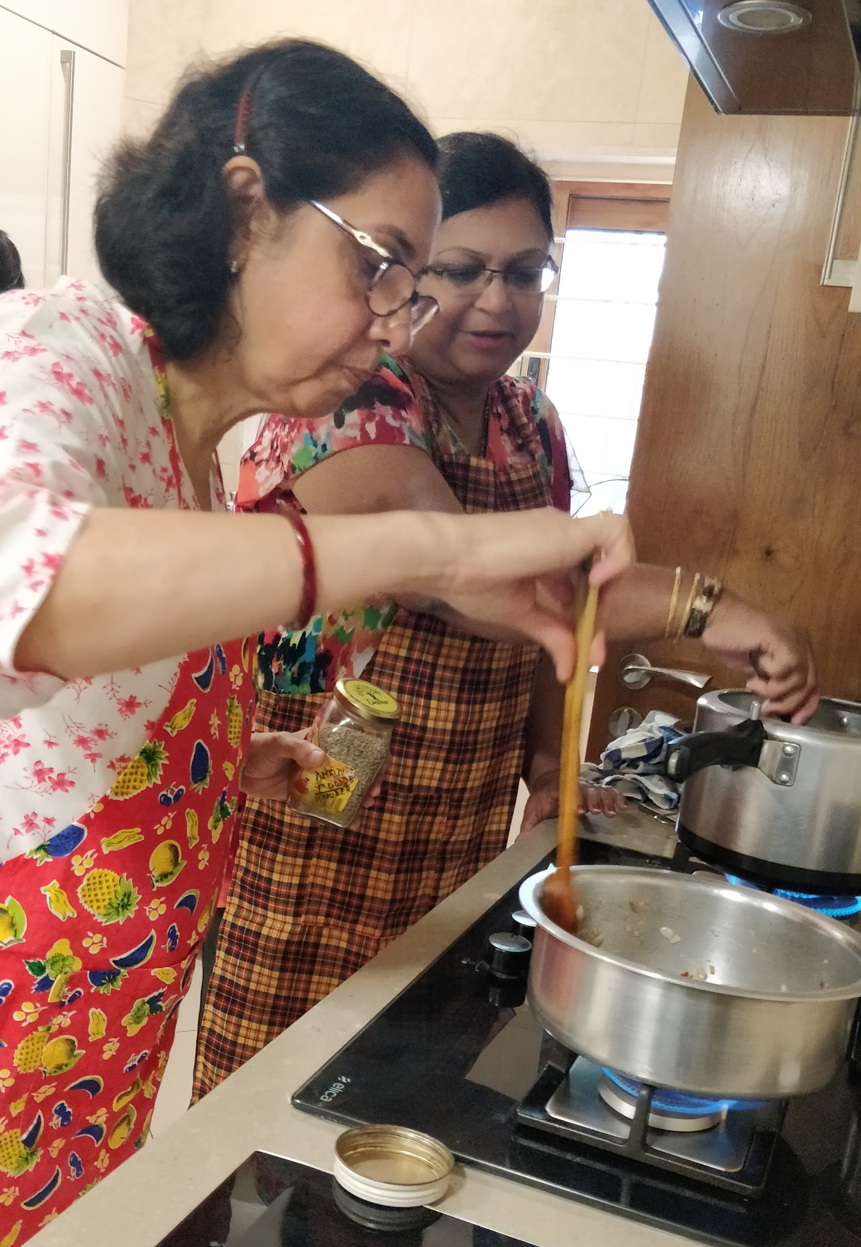 Sanober put us all to work, prepping vegetables, as she continued to talk to us and engage with us about food. The ice broke very fast and soon we were five women chatting away and cooking in harmony. It was a lovely feeling. There was nothing impersonal or ‘professional’ about this class. I felt I was being taught by an older friend who was enthusiastic about sharing everything she knew and passing on her passion for food. Isn’t that the best way to learn?
