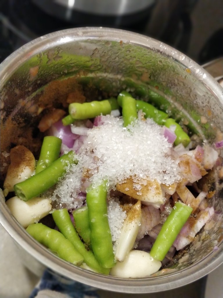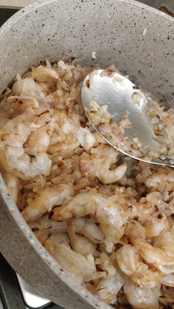 We then made a very yummy pickled prawn patio. The prawns were plump and fresh. The trick is in the jaggery and vinegar, making this a Parsi-style prawn balchao, spicy and sweet. Patio goes well with anything and personally, I love it with fresh bakery pau.