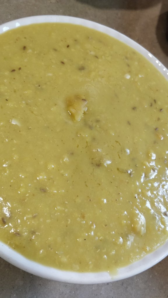 Dhandar is a special parsi combination of three lentils with the lightest vaghar (tadka/tempering) of jeera and ghee and garlic. It is food made on any auspicious day and served in homes on birthdays. This is served with plain rice, gently simmered until done in a wide, shallow and very Parsi vessel . The combination of the dhandar and rice is comfort food at its best. If you are really seeking comfort, the chicken kebabs go superbly with it. And I would add crisp papad and some tangy pickle ( my south Indian genes can’t resist papad and pickle and ghee with rice).