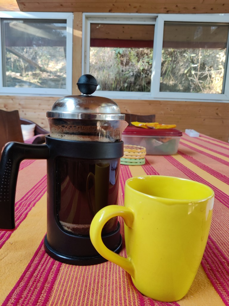 I fed my belly with simple pahadi meals including lai, a local green legume, sarvottam kaddu, aloo bandhgobi, ghee, jaggery, copious amounts of local dals, rotis and homemade gulab jamuna, laddos, kheer and spicy, tangy curries, all served with oodles of sunshine and fresh air. I drank french press coffee by the carafe. I basked, and basked like a lizard, wrapped in my new purple shawl, woven locally, napping in the sunshine, feeling warm and loved despite the 6500ft altitude.
