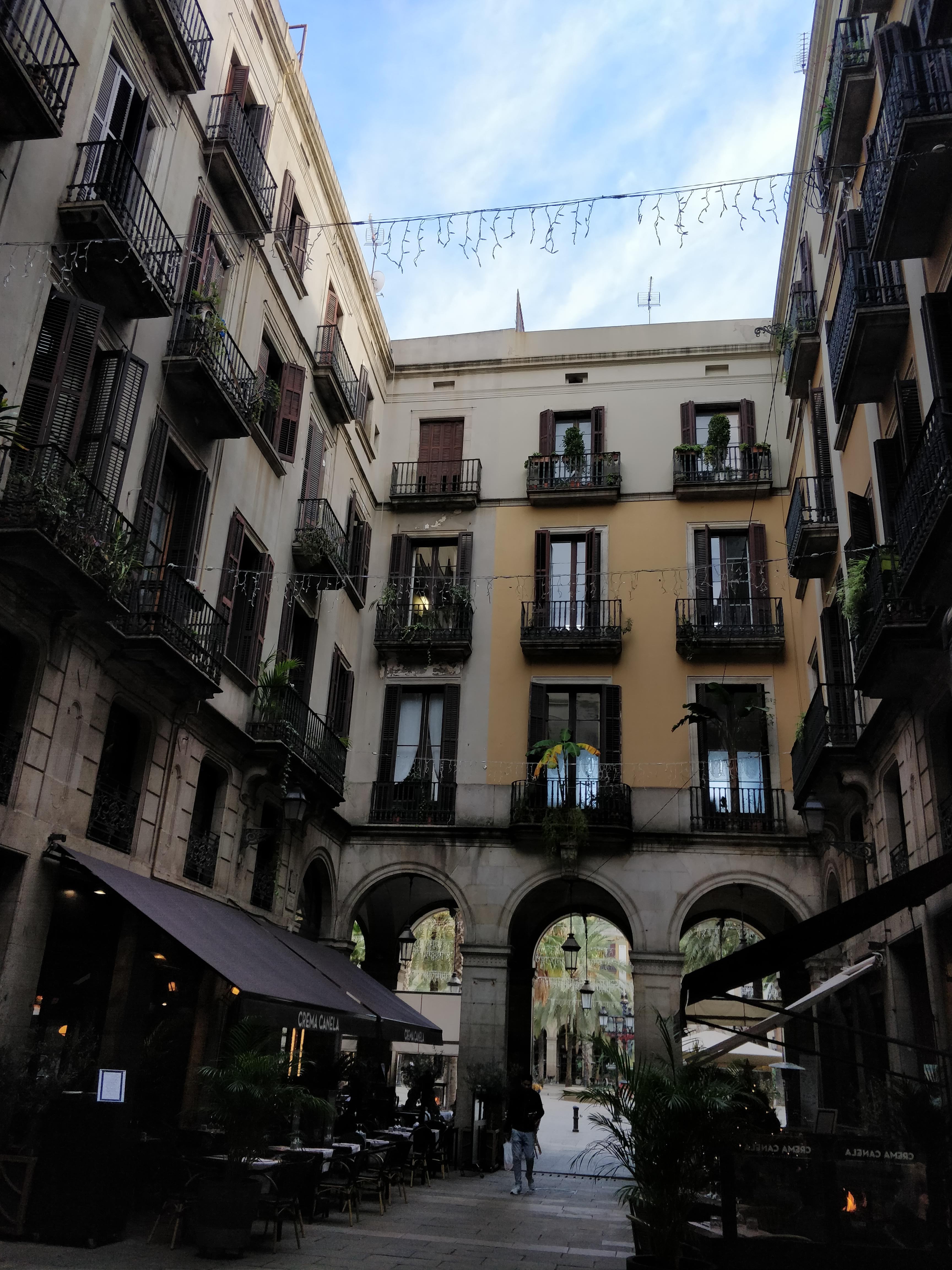 Just off la Ramblas is Placa Real, a grand, magnificent, enormous plaza which turns into the city’s party hub at night. Strung with a million lights and dressed in it’s festive best, Placa Real is lined with some truly good and truly awful restaurants, bars, jazz bars, cafes and every tourist trap possible. Look up and you will find shuttered windows past palm trees and hostels for back-packers. The music and the parties play on till dawn. I idly wonder what but might be like to spend a night in a hostel right here.