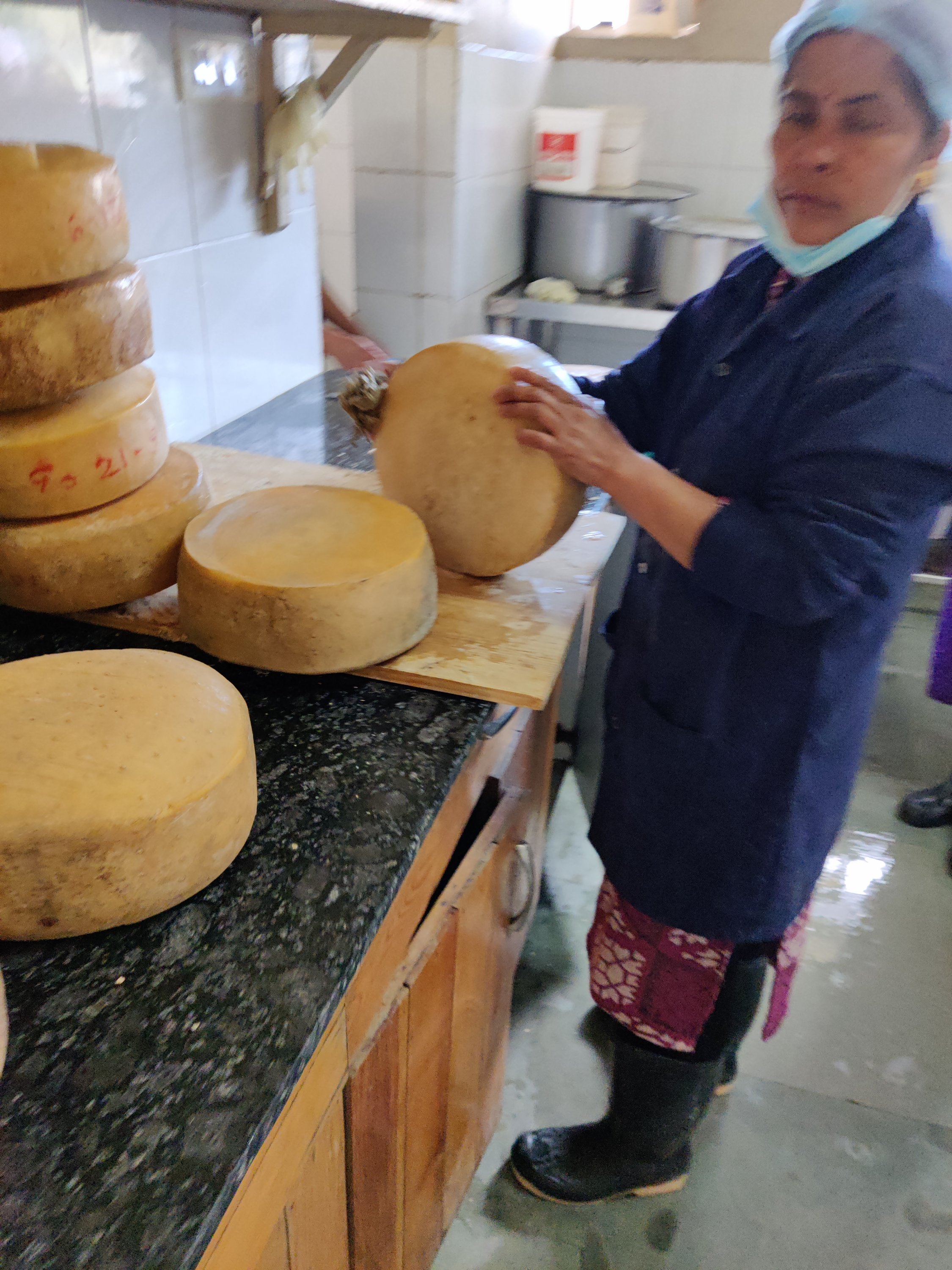 I am duly honoured by visiting the cheese lockers: wheels and wheels of old and new cheeses all marked and organised in a labyrinthe. They make tonnes of cheese each month and age them as needed. Unfortunately you won’t find an old Italian parmesan aged for several years here. This is pahadi cheese made with local milk, aged and sent to big city supermarkets. While traditional artisan cheesemaking takes far longer and is a culture by itself, this is hearty cheese to eat often with your drinks or on a platter.