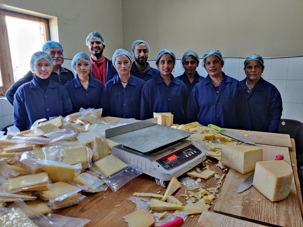 The cheesemakers are two amazing local village women, Sunita and Sarita, who know exactly how to make a gruyere or scarmoza. Their life story is what makes you believe in magic. The rest of the workers are also from Gram Darima. Mostly women, they all began life as pahadi gardeners and maids, learning the craft of cheesemaking from Pritam, who began Darima Cheese as a cottage industry, years ago. Now they walk with a swing in their step, heads high, eyes shining with pride as they talk animatedly about how their children and parents eat cheddar and gouda.
