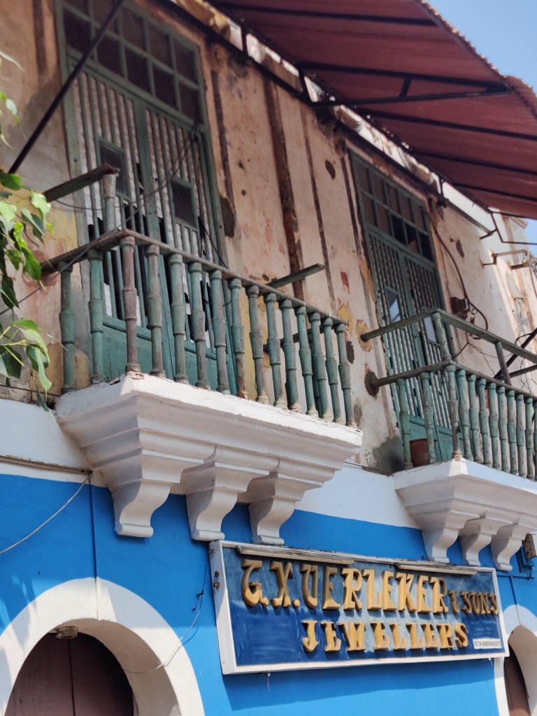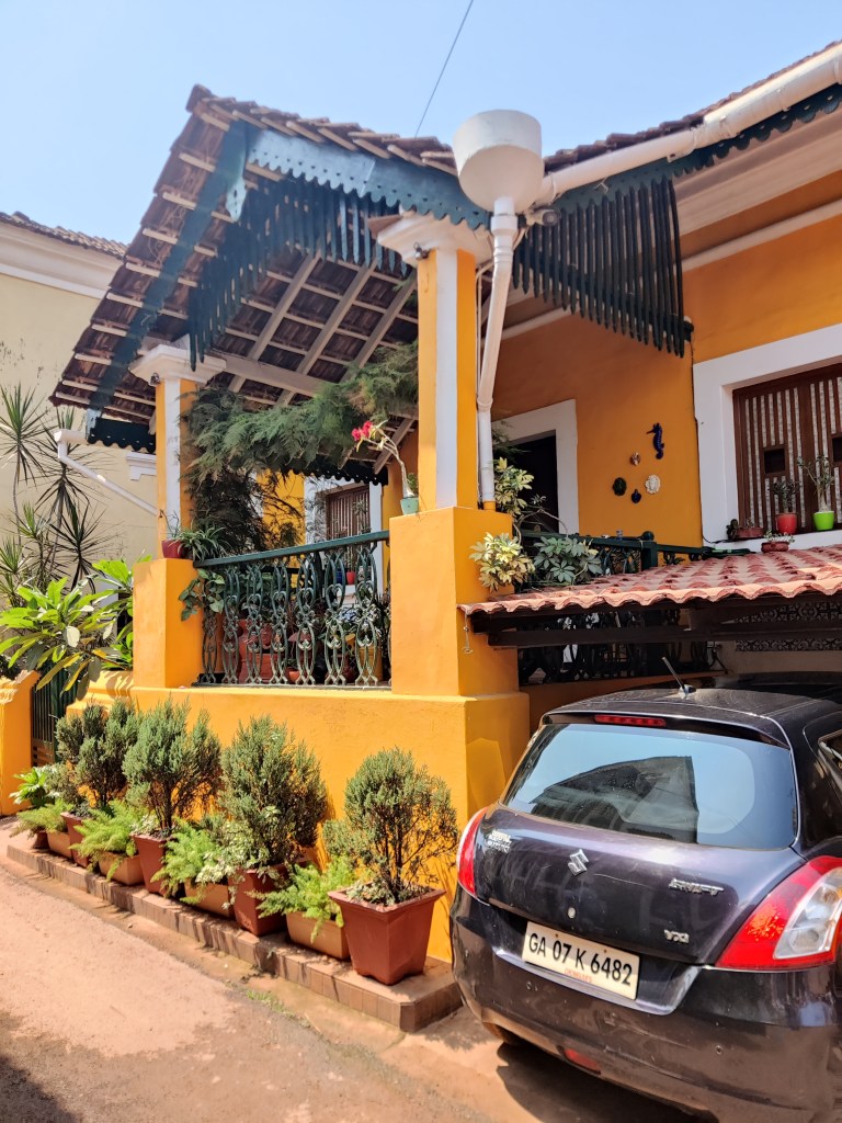 As Amreen explained, the houses were conjoined due to a lack of space but now make for the most delightful buildings, brightly painted and with beautiful touches, and traditional accents that declared who resided within. By church decree, only churches could be painted white which is why most Goan houses are so colourful and happy!