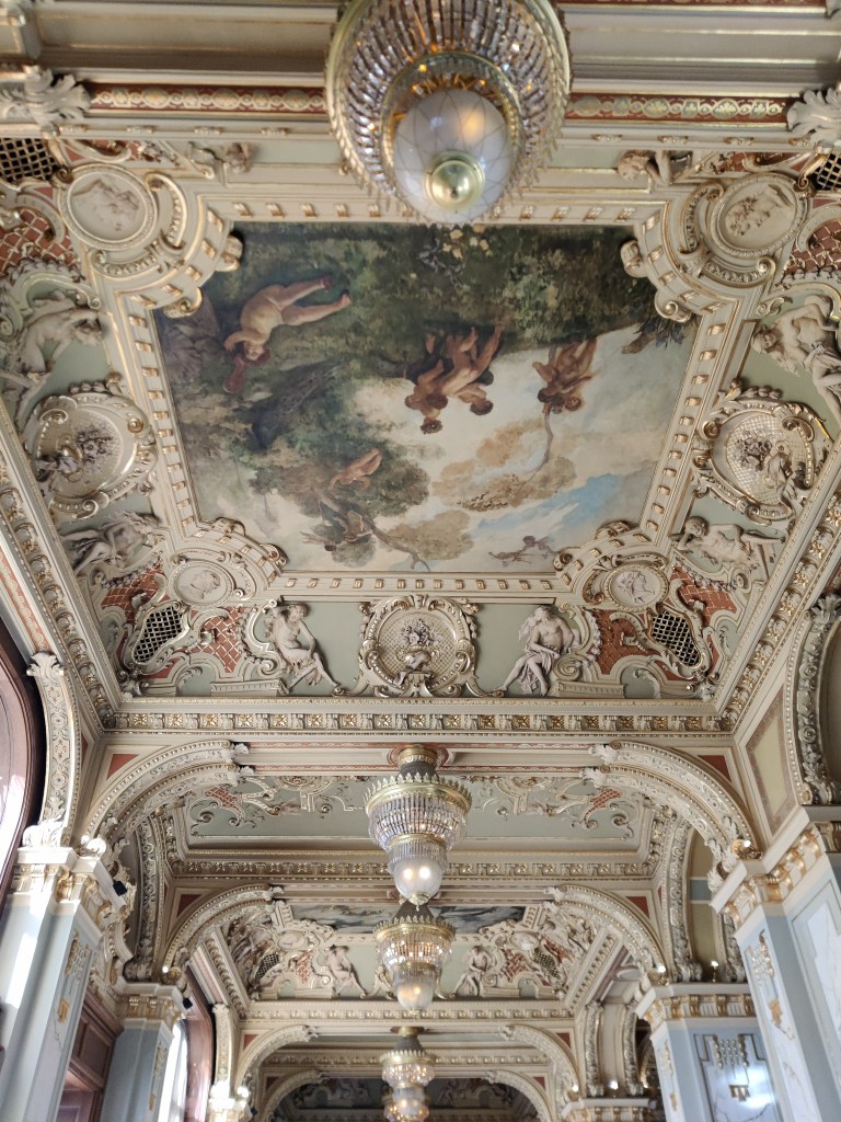 I stand up and I wander around and gaping openly at the hand-painted ceiling, the frescoes like a renaissance painting.