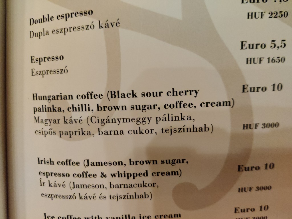 There are glorious mouldings and cherubs, the gilt and paint melding into one beautiful work of art. Marble floors, ornate arches, elegant balustrades and red velvet chairs, silk drapes and large windows are poised against modern coffee machines and white crockery. The wait staff cut dashing figures in their uniforms and are so very kind and helpful. The lady who serves me is impressive with her blonde pony tail and trim figure, as she advises me on what I should choose from the über modern entremets and courses. I manage a salad, a dessert and a special, the Palinka, a Hungarian liqueur drink, without breaking the bank, although it would be well worth it in this place, at this very moment. CARPE DIEM!