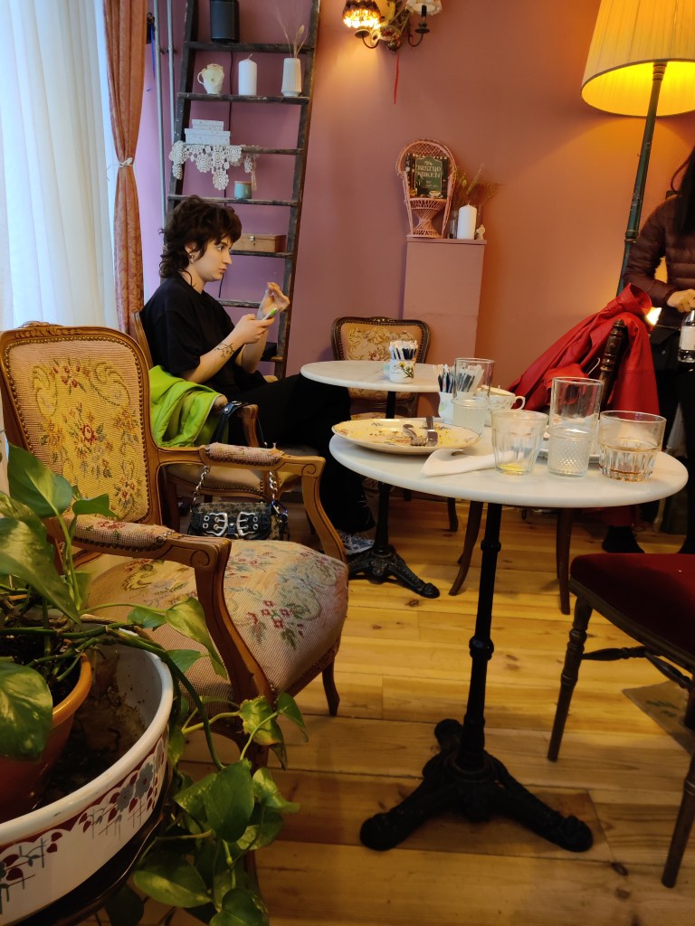 My favourite tea shop in Amsterdam is hands down the Last Crumb or die Laastse Kruimel. It is an absolutely quaint tea shop in a tiny old Dutch house, overlooking a bit of canal, where little old buildings are higgledy piggledy stacked against each other in narrow cobbled lanes. Most of the stores around are filled with touristy souvenirs and bars. Despite that, the area is charming and you can almost imagine what it was like centuries ago.