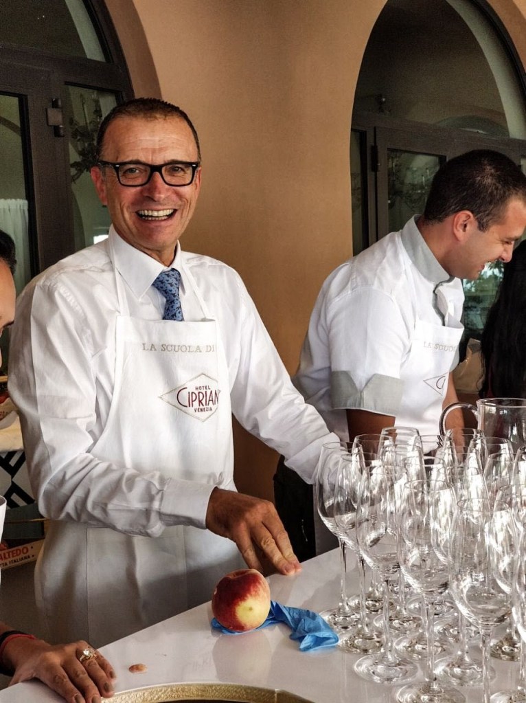 I was accompanying a group of ladies from India on their luxury jaunt, three cameras slung around my neck. Today, we would learn the art of the bellini from the man who made the first one, the OG bartender himself.