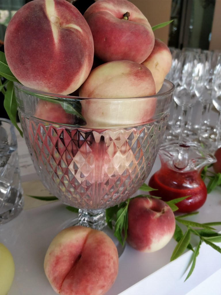 We gasped at the mound of beautiful white peaches; large, velvet blush white orbs, compellingly fragrant.