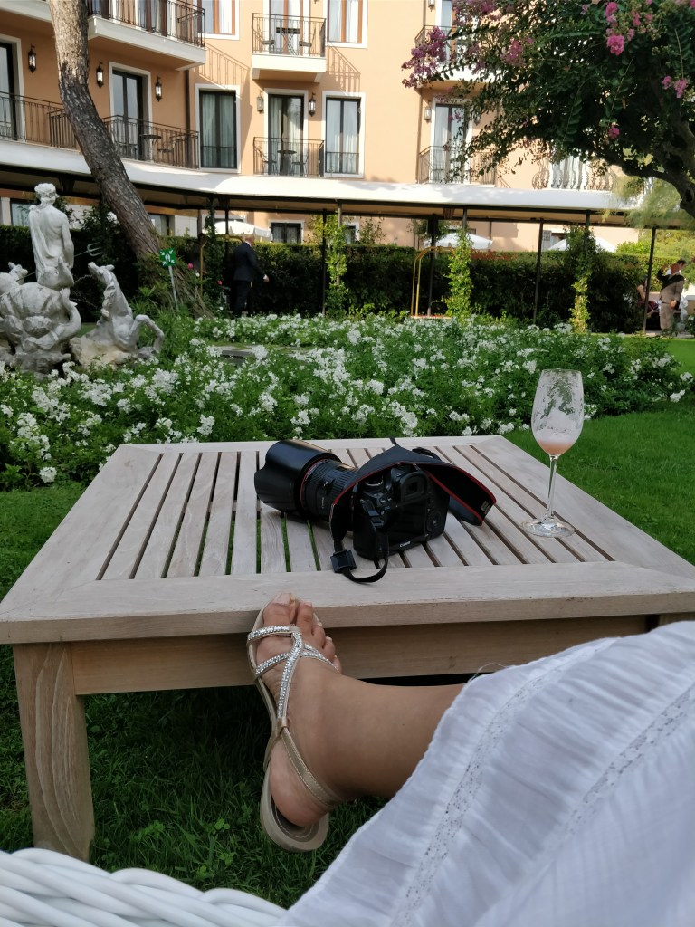 The Hotel is more boutique than grand. Hushed, but not overwhelming. Quiet luxury, a lawn sprawls with scattered garden chairs and pretty flowers; manicured to look just like the garden in someone’s home. It was a private place, and I could very easily picture George and Leo lounging about reading a book under the sun, and sipping ……bellinis.