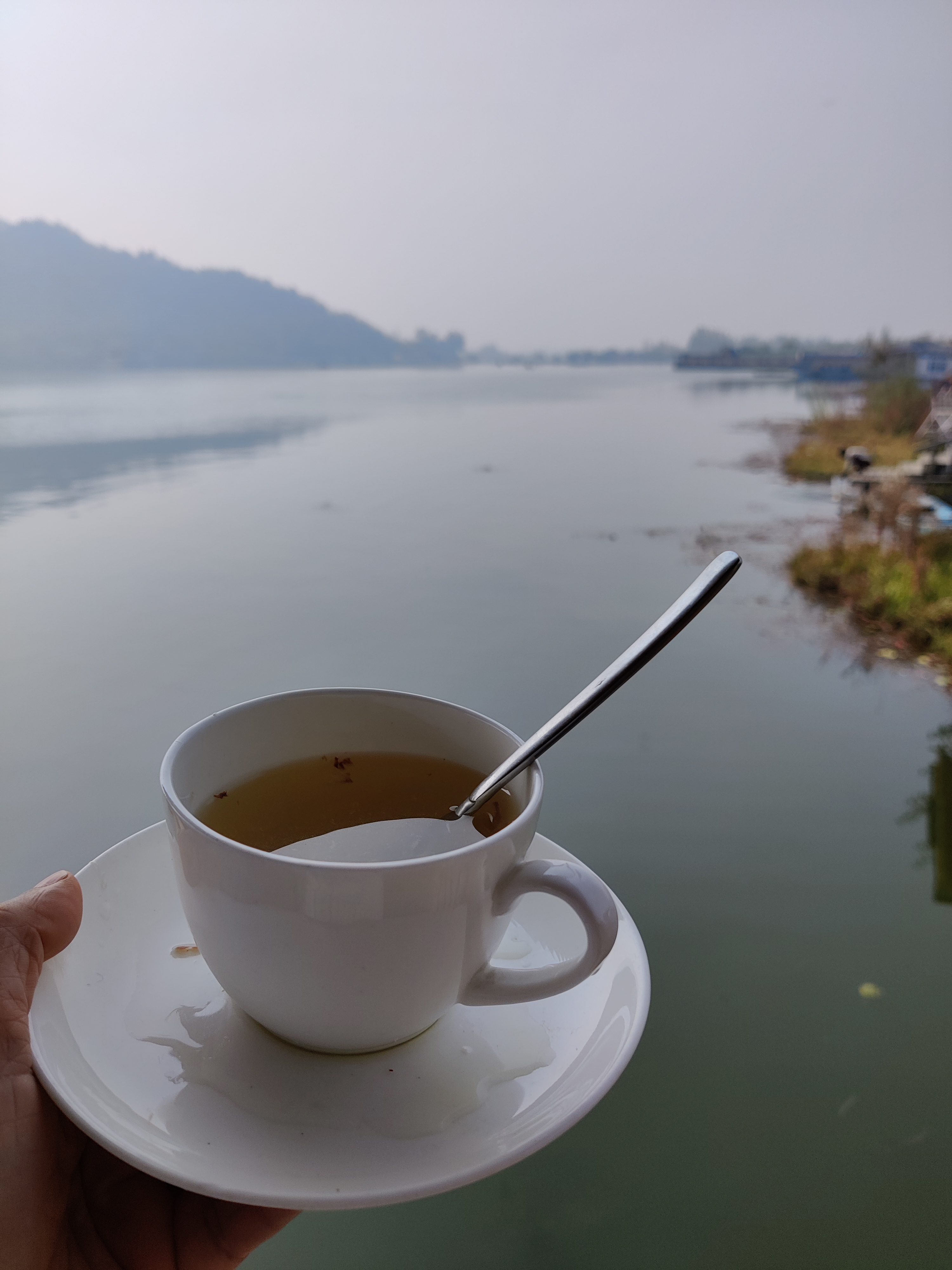 I am entranced when my boatman whips out an unexpectedly fancy Tea for me in a china cup and saucer, and a snowy white linen napkin. These are now balanced precariously over my velvet razai. The sunrise over the mountains throws pale silvery warmth over canals teeming with dried rushes and stalks of lotus. I look like an Ewok, rotund under layered blankets and my heavy coat. Any thoughts of ‘Kashmir ki kali’ sadly remain just that.