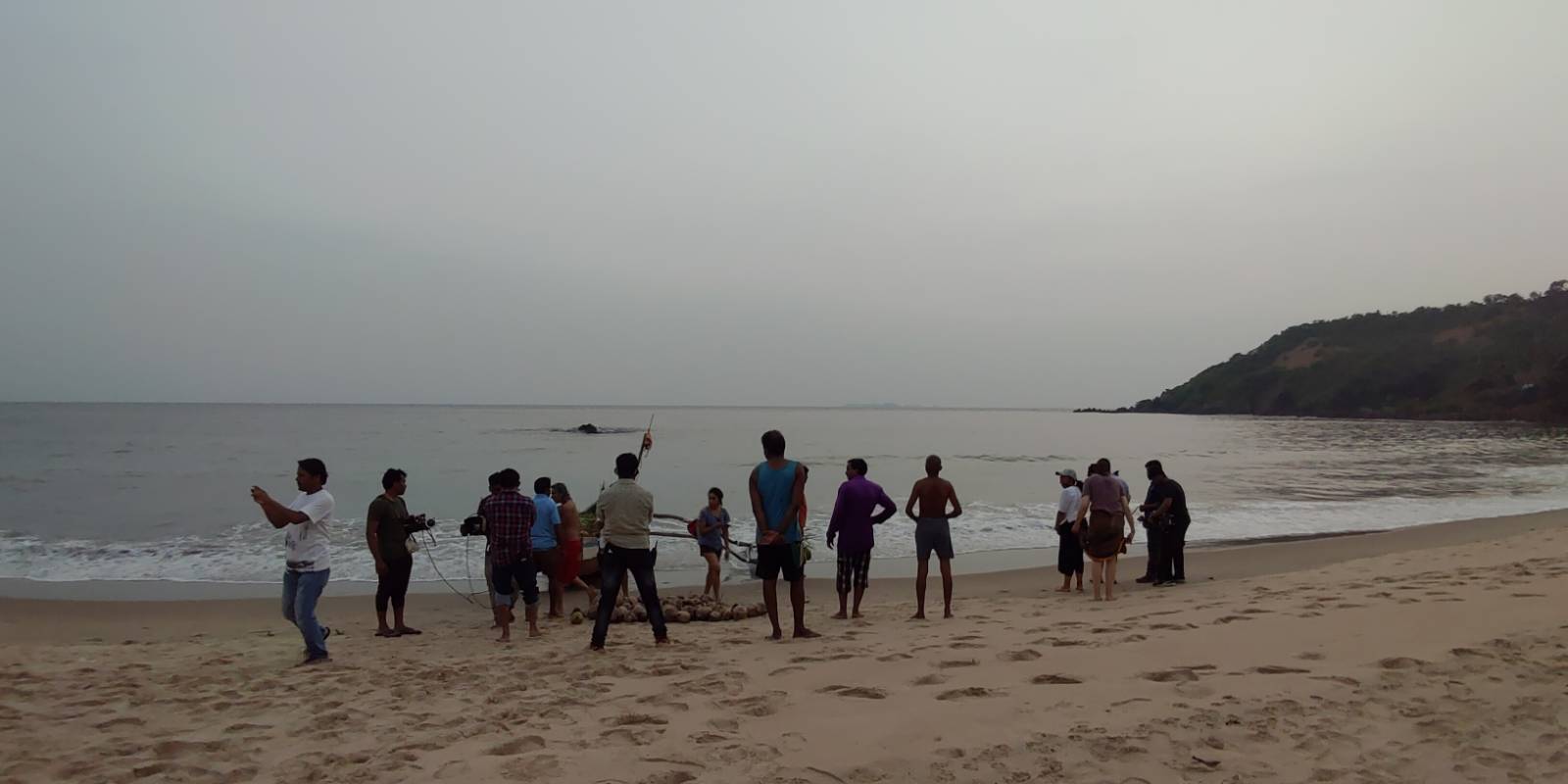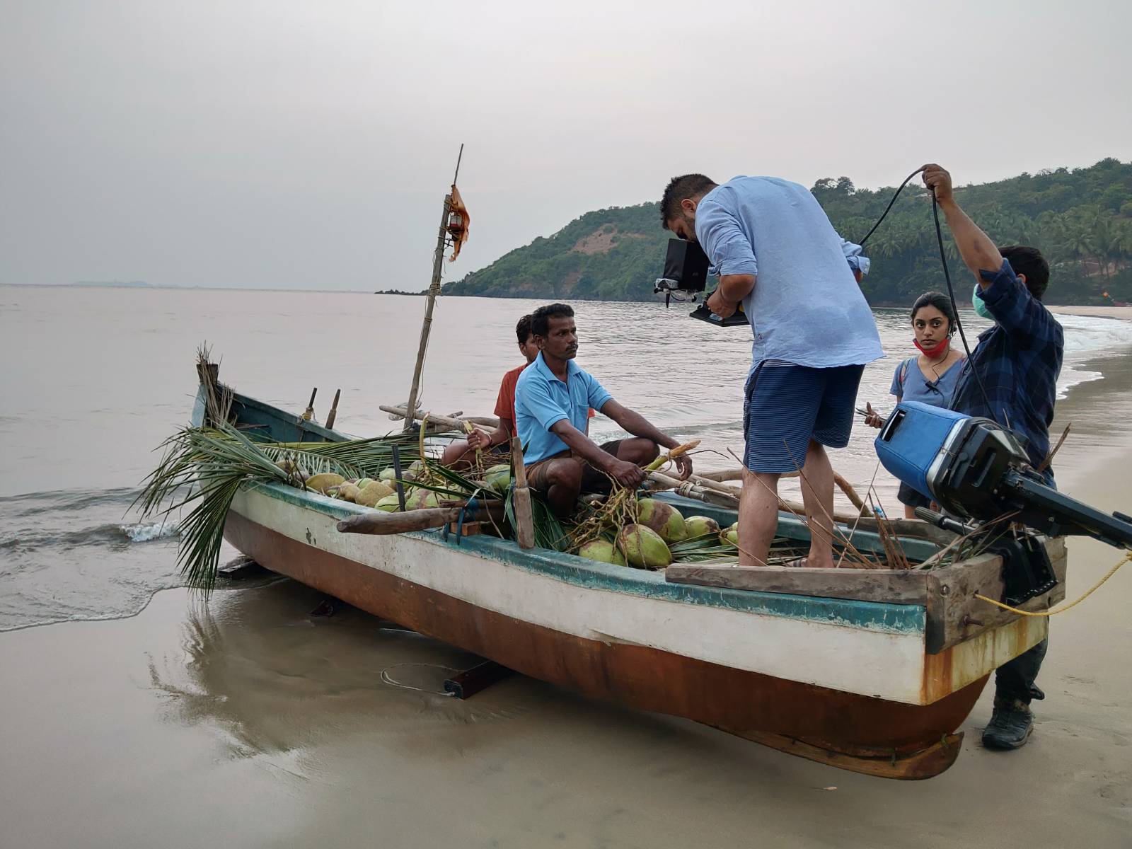 We are now driving single file on narrow village roads, off the main coast, filming in small hamlets, with utterly pristine coves of emerald waters. We shoot boats and coconut farmers and shiny black buffaloes. We dine only on local food in local hotels, large thalis and more crispy rava fried fish. There is country chicken curry and rice bhakris served on the beach as the sun sets blazing orange fire on that deep emerald green cove. We are bathed in iridescent hues as we wrap the end of the shoot. It is a Pack up and a film wrap, and we fall silent silent, It has been quite an odyssey: we were lucky to have been out in the wild in this terrible time across the world, and so well fed.